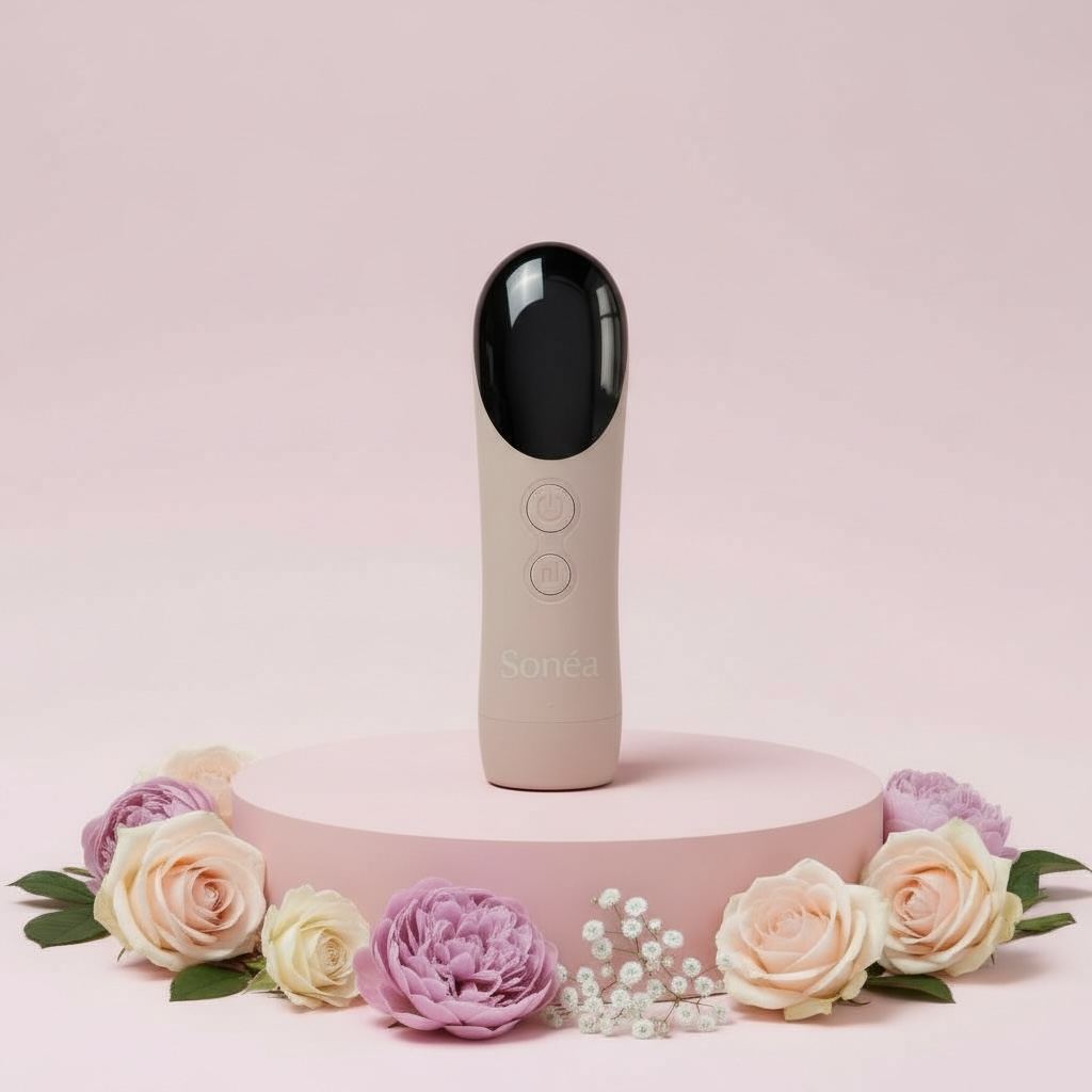 Le Scan Sonéa vous permet de partager ce moment avec l’autre parent à la maison, tandis que les méditations audio, la brume Voile Blanc, le gel d’Aloe Vera et le masque en soie transforment ce geste en véritable rituel.